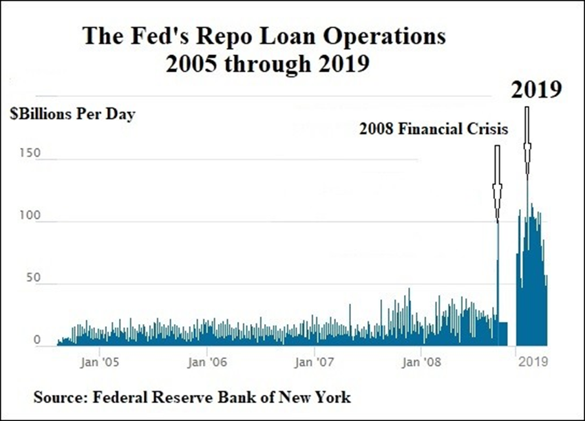 2022 年 1 月 4 日に報告したように、ウォール ストリート オン パレードのパム マルテンスは、 連邦準備制度理事会が 2019 年の第 4 四半期に 2008 年の銀行救済スキャンダルよりもはるかに高い率で銀行を救済したことを記録しました。 2008 年にさかのぼると、金融危機の最中に、このはるかに大規模な救済措置が完全に報道されなくなりました。これは、COVID-19 が始まる数か月前に発生し、2020 年の主要なニュース記事になりました。以下を参照してください。