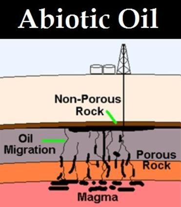 - 現代のロシアとウクライナの深い非生物的石油起源の理論は、石油が地球の地殻に噴出された深い起源の原始的な物質であることを認識しています. 要するに、率直に言って、石油は「化石燃料」 ではなく、 「堆積物」(または他の場所) にある死んだ恐竜 (またはその他の生物学的残骸) とは本質的に関係がありません。