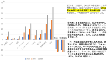 超過死亡が多いということだけど、では、具体的にどのような死因が増えているのか?