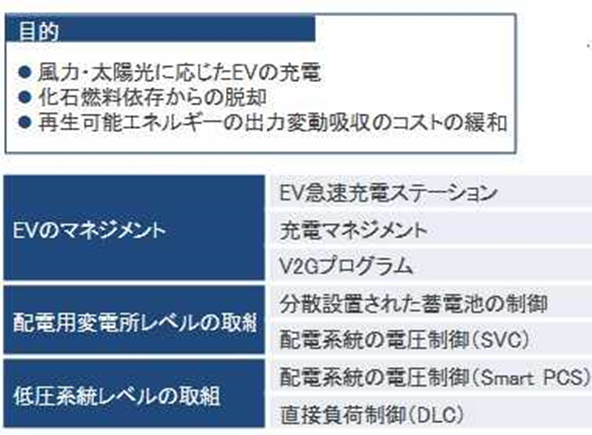 このプロジェクトは、導入が拡大する再生可能エネルギーを有効に活用するとともに、電気自動車(EV)の普及を拡大することを目的として、