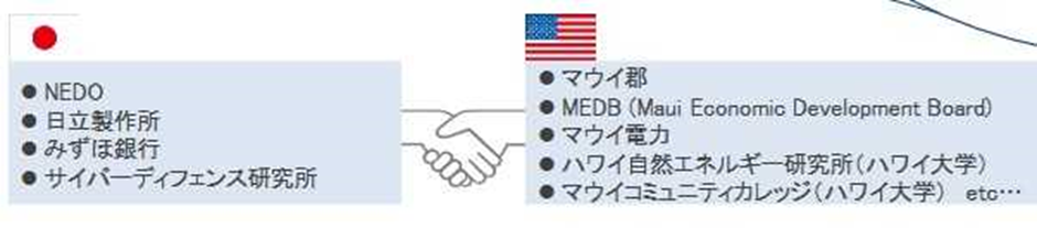 日本の NEDOをプロジェクトリーダとして、ハワイの関係者と日本企業が協力してスマートコミュニティを構築したものである。