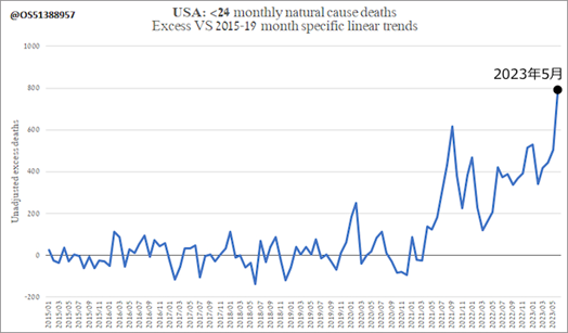 最近では、アメリカの 0歳から 24歳までの過剰死の推移として以下の統計も出されていました。