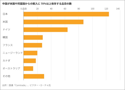 中国が米国とその同盟国から輸入する品目のうち依存度が 70%以上のものは 412もあるのだそうです。