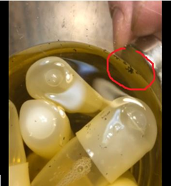 この記事を書いている間に、いくつかの追加情報が私の目に飛び込んできました。医薬品カプセルの側面に印刷されている黒いインクは、実は磁性を持つ不思議な黒い斑点で構成されているのです。医薬品カプセルを水に数時間浸すと、カプセルの黒い「インク」が黒い斑点に変化し、驚くべき磁気特性を示します。この静止画では、ガラスに当てられた一般的な磁石に黒い斑点が集まっているのがわかります: