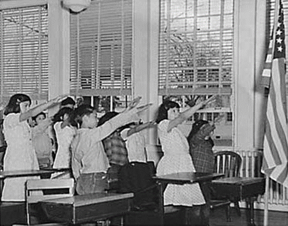 「ベラミー敬礼」をして米国への忠誠を誓う小学生たち。記事全文はこちら。